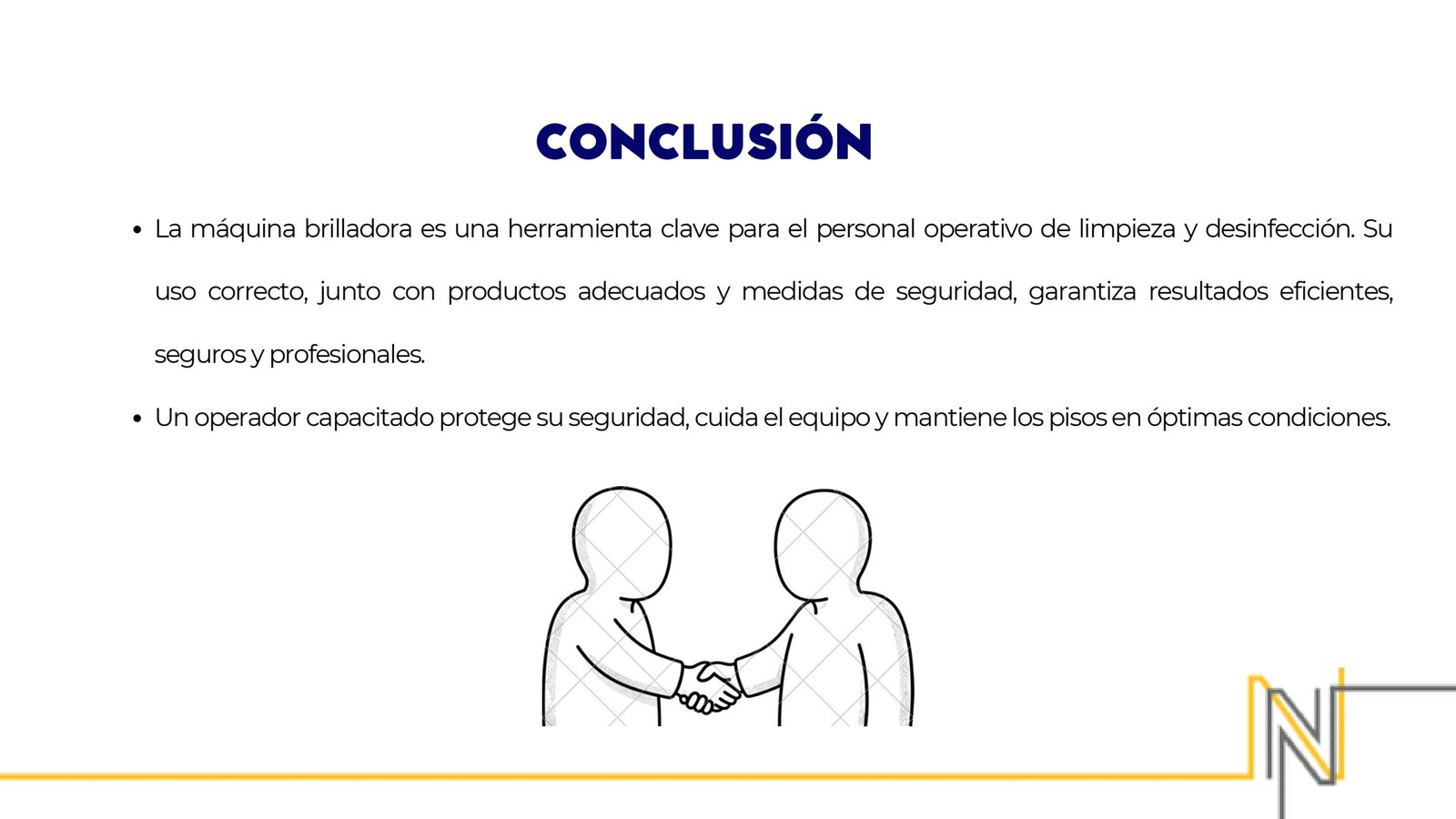 - La máquina brilladora es una herramienta clave para el personal operativo de limpieza y desinfección. Su uso correcto, junto con productos adecuados y medidas de seguridad, garantiza resultados eficientes, seguros y profesionales.