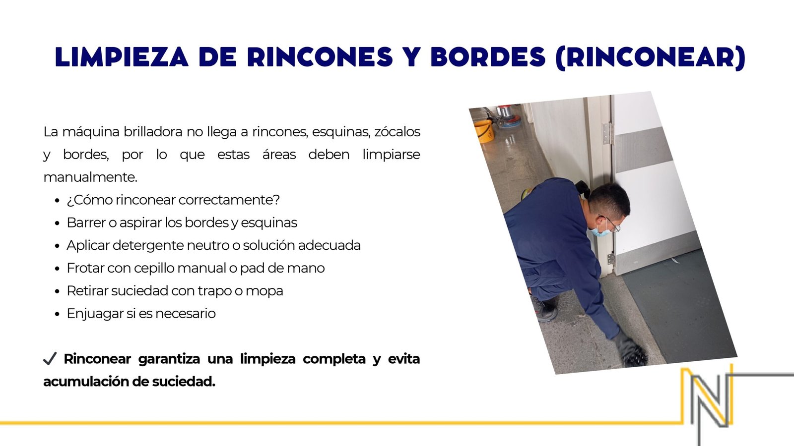✔ Rinconear garantiza una limpieza completa y evita acumulación de suciedad.